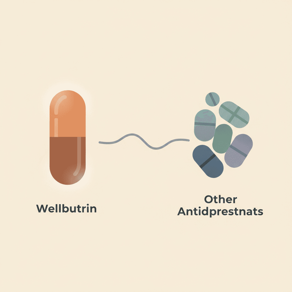 If you have had sexual side effects, emotional blunting, or weight gain on SSRIs or SNRIs, Wellbutrin can be an alternative that avoids those particular trade-offs. Evidence suggests a lower risk of sexual dysfunction and weight gain with bupropion compared with serotonergic antidepressants, although insomnia can be more common.