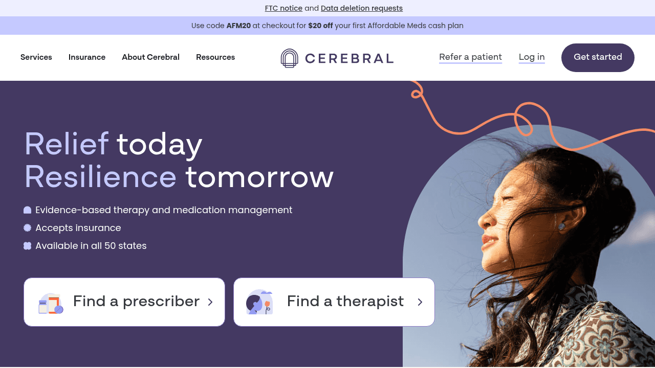 Cerebral runs a subscription service that bundles therapy sessions with medication management. The company has faced regulatory scrutiny over its prescribing practices for controlled substances.