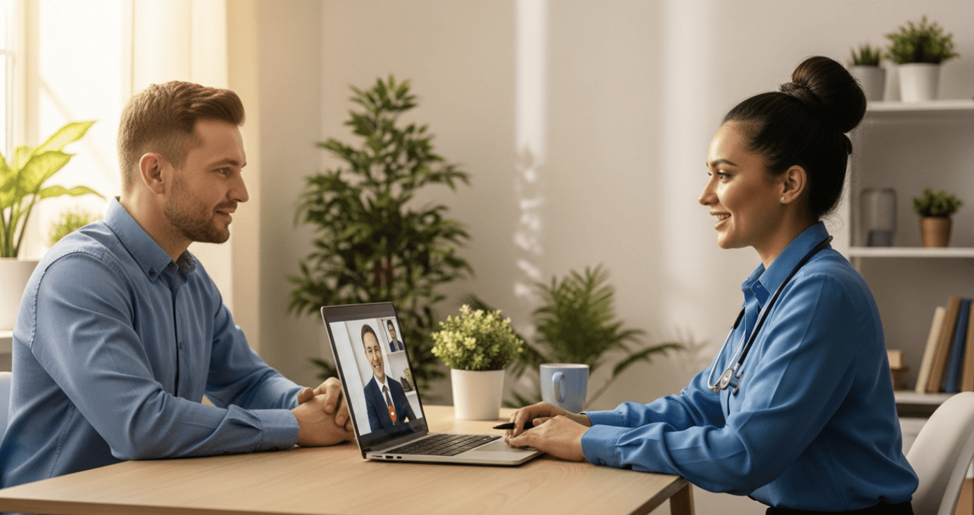 We operate fully virtual. Every appointment happens over secure video, from anywhere in Texas. No referral, no commute, and no waiting room. We offer scheduling flexibility across early mornings, evenings, and weekends, and new patients typically get in within days of booking. Care is delivered by licensed clinicians, not software.
