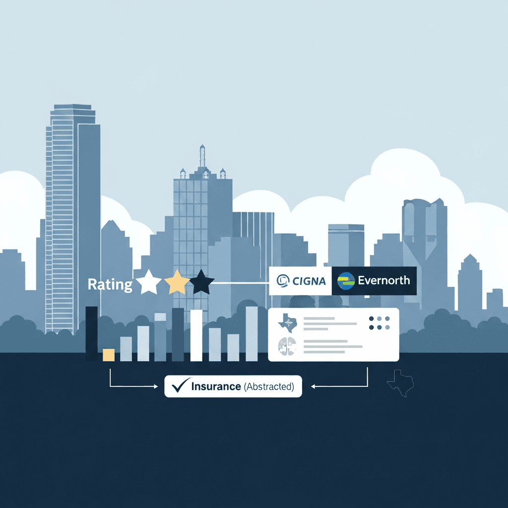 For Cigna and Evernorth members in Dallas, you're using your existing insurance benefits to access the same level of care you'd expect from a top psychiatry practice, just faster and without the commute.